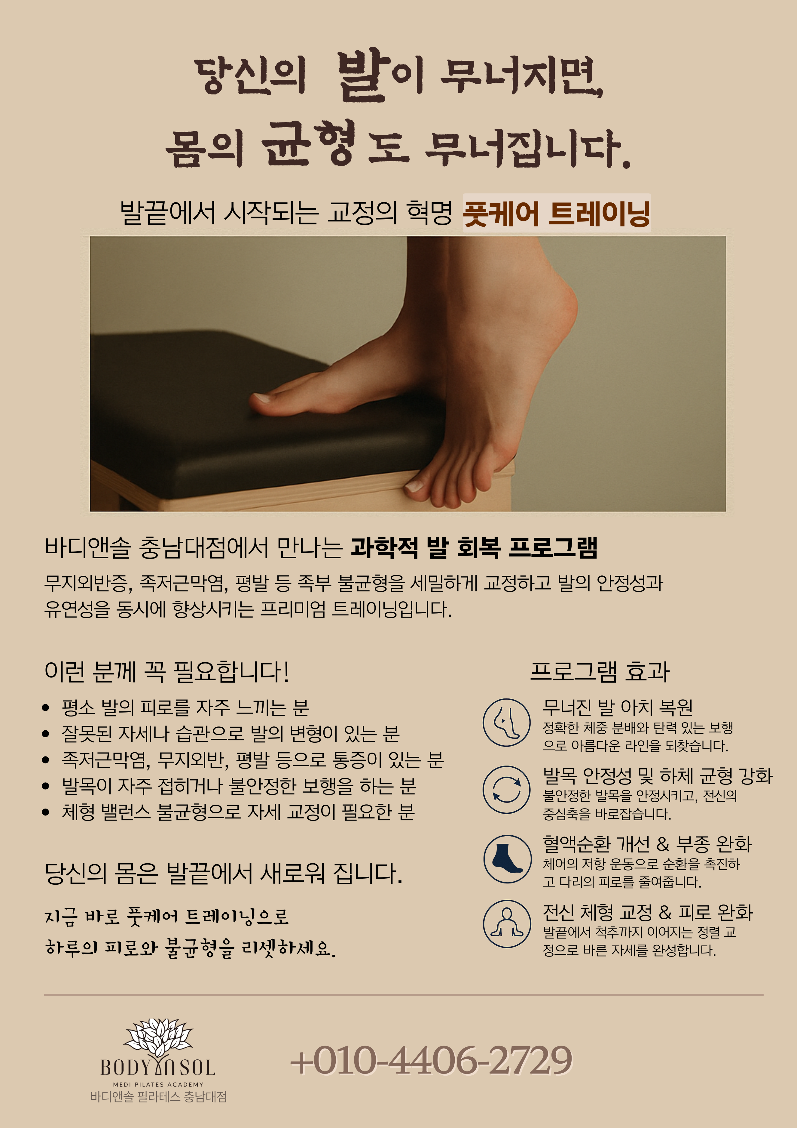 발끝에서 시작되는 건강한 균형, 바디앤솔이 언제나 함께하겠습니다.