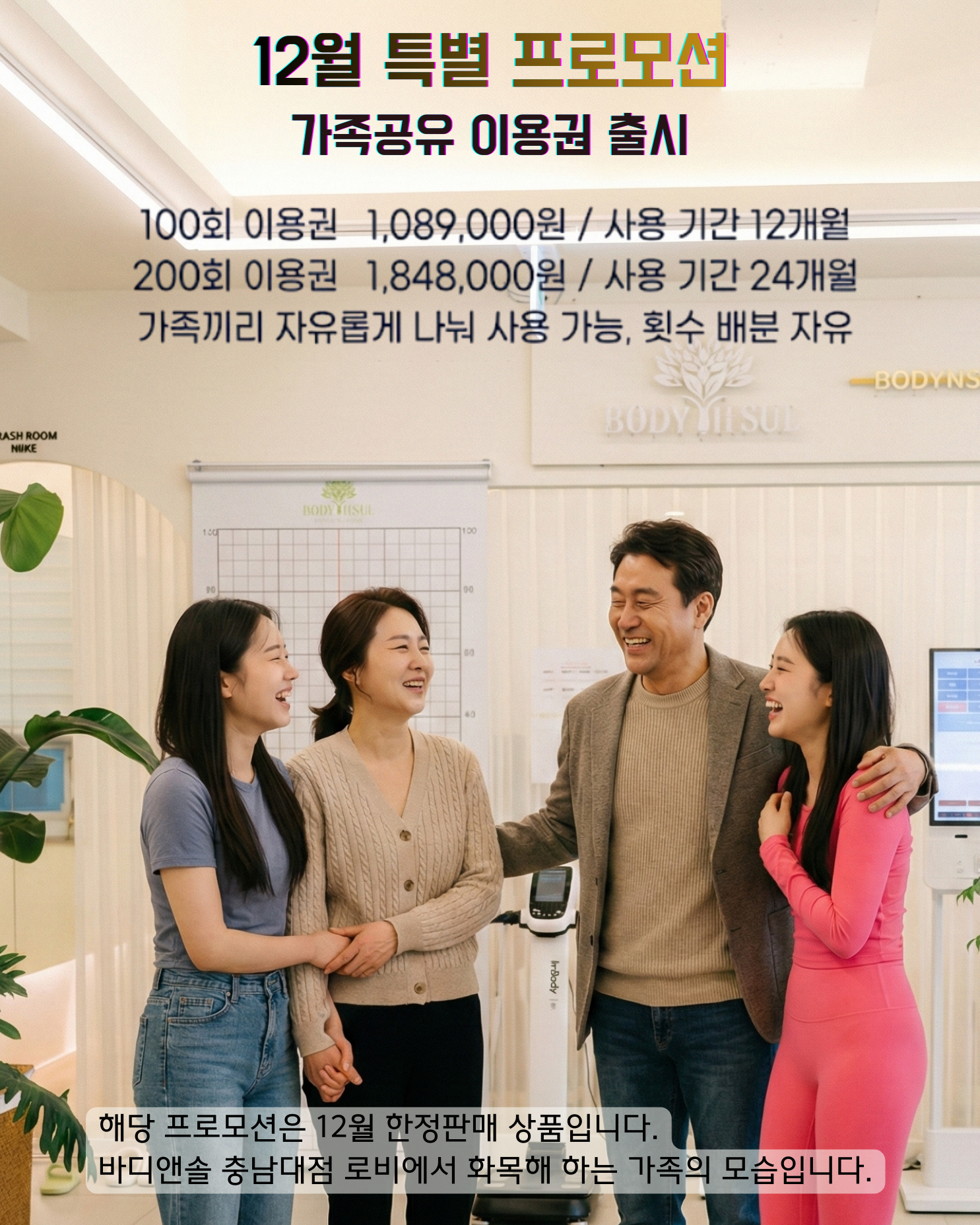 가족이 함께 건강해지는 공간, 바디앤솔 충남대점이 되겠습니다.