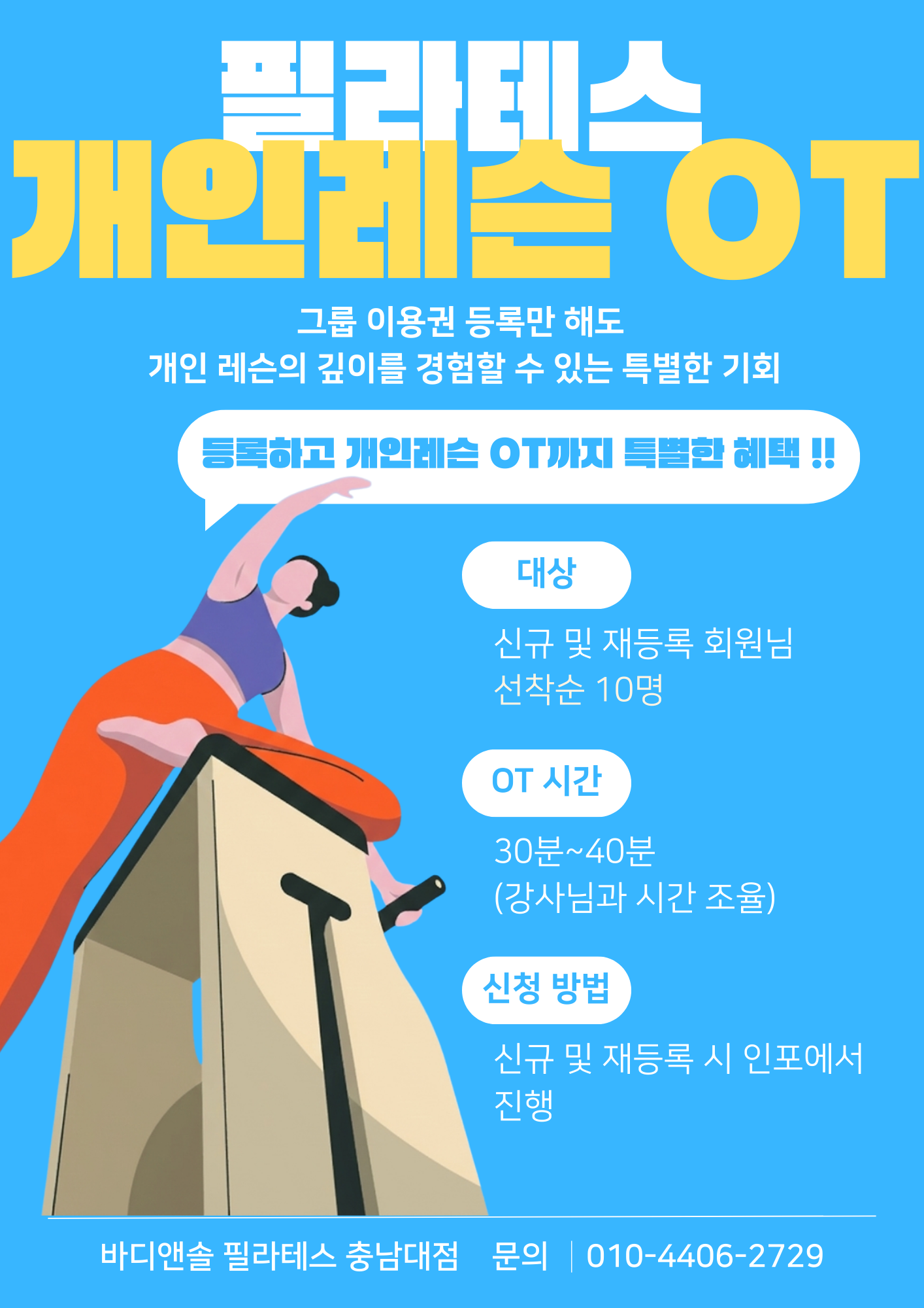 문의 010-4406-2729 바디앤솔 필라테스 충남대점